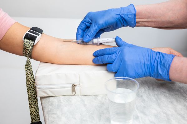 病院へ到着すると、最初に血液検査を受けた。結果が出るまで約1時間かかるとのこと。 膠原病内科の待合スペースで静かに待つことになった。